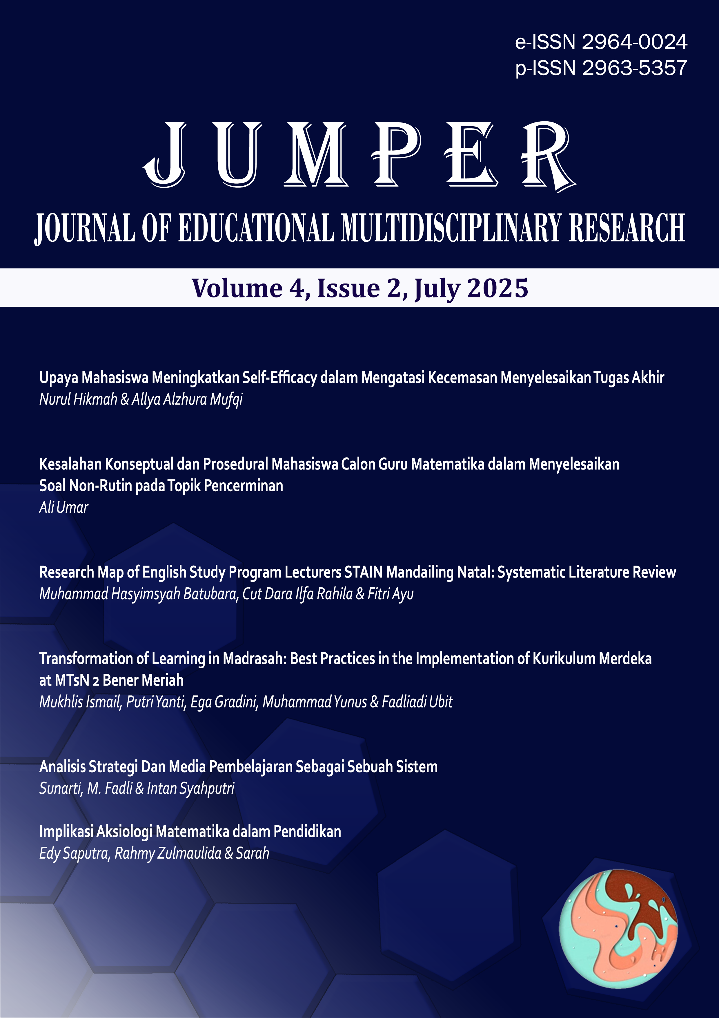 Kesalahan konseptual dan prosedural masih sering ditemukan di kalangan mahasiswa calon guru matematika dalam menyelesaikan masalah matematika. Namun, soal yang digunakan untuk menganalisis pemahaman konsep dan prosedur umumnya masih bersifat rutin, sehingga belum mampu menggambarkan secara mendalam penguasaan mahasiswa terhadap materi yang dipelajari. Oleh karena itu, penelitian ini bertujuan untuk menganalisis kesalahan konseptual dan prosedural mahasiswa calon guru matematika dalam menyelesaikan soal non-rutin pada topik pencerminan. Penelitian ini menggunakan pendekatan deskriptif kualitatif dengan subjek sebanyak 16 mahasiswa Pendidikan Matematika UIN Mahmud Yunus Batusangkar. Instrumen yang digunakan berupa satu soal non-rutin yang diberikan setelah mahasiswa mempelajari topik pencerminan. Hasil penelitian menunjukkan bahwa 11 mahasiswa mampu menyelesaikan soal dengan benar, sementara 5 mahasiswa lainnya melakukan kesalahan. Kesalahan konseptual yang ditemukan mencakup ketidakpahaman terhadap konsep pencerminan dan persamaan garis, serta penggunaan notasi yang tidak tepat. Adapun kesalahan prosedural meliputi kesalahan komputasi dan kecerobohan dalam menyusun persamaan. Temuan ini mengindikasikan bahwa masih dibutuhkan penguatan pemahaman konsep dan prosedur sebelum mahasiswa diarahkan untuk mengembangkan kemampuan berpikir tingkat tinggi.